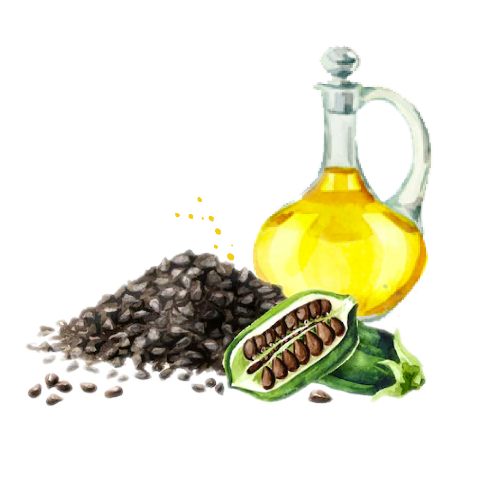 Sesame soothes and heals your scalp and roots. Can help to soften your skin and make your hair look smoother. The antifungal properties prevent scalp dryness, flaking, and itching. Antioxidants protect skin cells from the damage like UV rays, and pollution. Especially suitable for oily skin, it is beneficial for controlling acne-prone reactions!